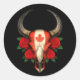 Canadian Flag Bull Skull with Red Roses Classic Round Sticker