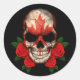 Canadian Flag Skull with Red Roses Classic Round Sticker