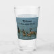 Canadian Geese, a gander, a goose and their goslings, on lake water with your personalised greeting, Lake, lakefront cabin or lake house name and your Family Name all customisable on this beautiful and functional photographic Lakefront glasses. Canadian Geese mate for life and in this photography the two larger parents are seen with their young brood of smaller goslings. The distinctive colouring of the Canadian Geese with their black head and neck, white cheeks, white under its chin, brown body, white bottom and black tail is on display against the blues and green of the lake's water in this beautiful wildlife family portrait. This is original bird photography of Lake Norman in North Carolina, USA by JLW_PHOTOGRAPHY.