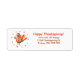 A cute Thanksgiving address label with my design of a cute turkey wearing a Canadian Flag top with maple leaves flying around him.