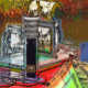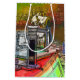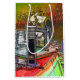 An art design of a narrowboat chimney and an old decorated lamp.Canal boats, known in the UK as narrowboats, were originally used to transport goods around the country. They are now used mainly for leisure and attract people from all over the world to enjoy our rural countryside. These boats look very pretty with their brightly colored cabins, traditionally blue, red or green. Flowers and castle designs also adorn the more traditional boats.