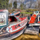 An art design of old moored narrowboats on the canal waiting for restoration.