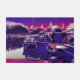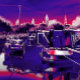 A vibrant art design of moored narrowboats on the canal.