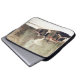 This laptop sleeve looks exactly as it does in picture. I actually thought is was too small until I put my laptop in it. It's a bit snug, but it fits. Figure it will stretch a bit, hopefully seams hold. Them seem good for now. I didn't have any personalization done, looks great as is.
