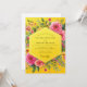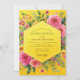 Embrace a bold and joyful atmosphere with this stunningly vibrant design. A brilliant canary yellow background sets the stage for a lush arrangement of painterly magenta peonies and verdant green leaves. This cheerful and artistic composition makes a memorable statement for your special day.