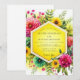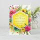 A burst of vibrant summer color creates a joyful and energetic atmosphere. This lush botanical arrangement features a stunning palette of canary yellow, fuchsia, and deep teal. Bold dahlias and sunny blossoms are nestled amongst verdant ferns and foliage, evoking a lively, tropical feel for a radiant union.