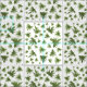 An artwork of original pressed canary leaves presented in their natural green colour.