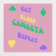 Embrace the Canasta passion with our lively design featuring the mantra "Eat, Sleep, Canasta, Repeat." Elevate your space with this spirited reminder of the card game enthusiast's dedication.