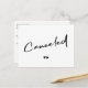 Cancelled black and white cancel announcement postcard