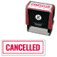 ✖ Cancelled modern red border custom office self-inking stamp. Handy official documents and private papers. Personalised school and office supplies. Stylish border and modern typography template. Custom logo sign stamps for teacher, office worker, business employee, coworker, boss, corporate company manager, job, staff, personnel, etc. Red, black and blue ink also available.