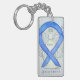 Awareness ribbon angel keychain features the art of a violet awareness angel painting. The art side notes "Cancer Awareness" and the reverse side states "I Hope & Support Awareness for a Cancer Cure!" Add your own custom words for personalised angel art cause awareness custom charm key chains! You can also remove the text for an art only angel pendant key chain. The violet awareness angel ribbon painting art keychains can be customised with personalised messages to make great awareness cause art key chains for fundraisers, awareness gifts, or other special events. Give this angel art keychain charm as an awareness ribbon gift for any occasion.