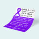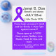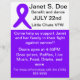 Cancer benefit flyer featuring purple ribbon which is the general purpose colour for cancer awareness.