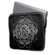The sleeve is made of nice feeling material and seems very durable. I'm not sure how easy it'll be to clean, but the construction seems sound and the fabric is quick thick. I also like the double zipper. The printing is lovely and appears durable. The white on black contrast is nice, and the design very elegant.