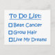 After a cancer diagnosis your priorities change and you get a new to do list, and after chemo growing hair is on the list as well as living life to the fullest and living your dreams. Designed by a Breast Cancer Survivor and Chemo Veteran.