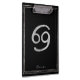 Stylised hammered silver Cancer the crab astrology zodiac birthday symbol in a hand drawn silver fine double line frame. Cancer text in a silver script font can be customised to add a personal touch.