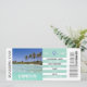 This unique, modern and fun faux aeroplane boarding pass / ticket to Cancún International Airport has been designed to allow you to custom edit the point of departure; arrival; the date; time and place you will be flying to and from for your special wedding, bachelor or bachelorette party. This particular design has a colour photograph of a sparkling and clear turquoise sea blue ocean set in front a sandy white beach dotted with palm trees as a backdrop. Change the background colour to any colour of your choice and use the edit button to explore all custom functions you can use. These are ideal for exotic beach or tropical island weekend getaways for men and women or for any beachy, coastal destination wedding; anniversary; birthday or bridal do.