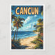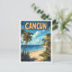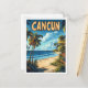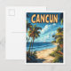Cancun Mexico Art Vintage Illustration Travel Postcard