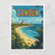 Cancun Mexico Art Vintage Illustration Travel Postcard