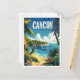 Cancun Mexico Vintage Illustration Travel Postcard