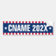 Bumper sticker featuring your custom candidate name and year in a bold, white font flanked by stars on a blue background with red and white, striped borders above and below.