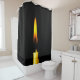 Burning yellow wax Candle against black background. Top part of the candle. Shower curtain to decorate your bathroom for fun and good mood