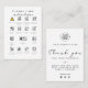 The thank you card features a warm handwritten script that reads “Thank you for your purchase,” along with a customisable coupon code, your logo, and social media handles to encourage repeat orders and build brand loyalty. Flip the card over to reveal easy-to-read candle safety icons and instructions that help educate customers on proper use and care.