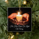 Lovely photo of a lighted candle being held in two hands, is featured on both sides of this square ceramic ornament. Message on the front of the ornament reads, "He Has Come To Light The Way" and back of the ornament reads, "Christmas Blessings To You". Makes a wonderful decoration for your tree or give this ornament as a gift!