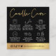 Trendy Candle Safety Guide with modern script font in faux gold and candle care icons. This black and gold candle warning instructions cards includes the most important care information for soy wax candles as well as space for your logo and business details on the back. The elegant script font adds a feminine lux feel to this design. The perfect addition to your candle boutique packaging design.