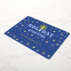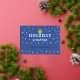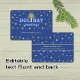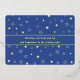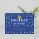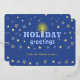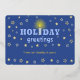 This card has a deep blue background, a scattering of stars, and says "Holiday greetings" on the front. The 'i' of Holiday is a candle shining brightly. The message in gold foil "From our family to yours" can be edited for your own preferred greeting. On the back is a similar scattering of stars, and text ready for you to personalise with your own message. (Or you can use the default "Wishing you light and joy and happiness in the coming year!")