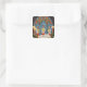 Cute vintage artwork. Three choir boys stand singing carols. An open Bible in front and lit red candles to the sides. a large red and blue stained glass window behind