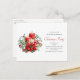 Postcard invitation with a pretty bouquet made with watercolors. Red candles with gold accents and a smaller white candle too. Surrounded by a pine bouquet with a poinsettia flower.