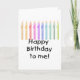 A line of various colours birthday candles and text that reads "Happy Birthday to me!" on birthday cards, T-shirts, mugs, and more.