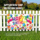 This colourful banner is perfect for a birthday party. It features candy and balloons, which are sure to put a smile on your guests' faces. The banner is made of high-quality materials and is sure to last. It is a great addition to any birthday party and will help to create a festive atmosphere.