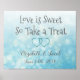 Candy Bar Blue bokeh and grey text Love is Sweet Poster cute for wedding or baby shower.