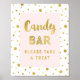 Candy bar sign poster for baby shower, bridal shower, birthday or wedding in light pastel blush pink and white with gold confetti and hand lettered style text. Perfect for a baby shower, wedding, or bridal shower.