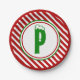 Candy Cane Basics Red/White Monogram Paper Plate