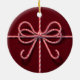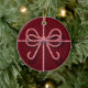 This festive ornament is wrapped in a beautifully illustrated candy cane bow.