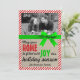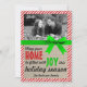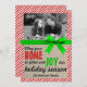 A bright and cheery Christmas card or holiday card! Features a red and white stripped candy-cane inspired border with bright green ribbon look and a subtle burlap background. Customise with your own family picture!
