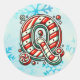 Candy Cane Christmas "Q" Sticker, Festive Stripes Classic Round Sticker