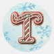Candy Cane Christmas "T" Sticker, Festive Stripes Classic Round Sticker