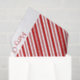 Candy cane irregular striped pattern with alternating thick and thin stripes in red and white. Featuring white stripes at both end with Merry Christmas in red font which can be personalised with your own message.