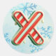 Candy Cane Christmas "X" Sticker, Festive Stripes Classic Round Sticker