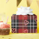 Candy Cane Hearts and Snowflakes On Plaid Wrapping Paper