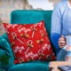 Candy Cane Holly Jolly Modern Festive Christmas Cushion
