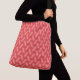 Ladies large Crossbody Bag in reflective pink squiggle shapes on a base colour of red.
