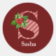 Candy Cane Stripe and Holly S Monogram Classic Round Sticker