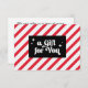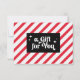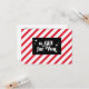 Festive Christmas gift certificate with diagonal red and white stripes background and black plaque with retro script font and stars