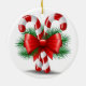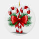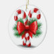 Candy Cane, Christmas Tree Branch, and Red Bow Ceramic Ornament