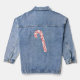 This denim jacket has a Christmas design of candy canes in red and white scattered about the design. If you like different coloured candy canes, message me.