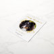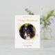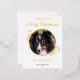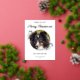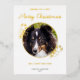 Festive round photo template design featuring Destei's original illustration of striped Christmas candy canes decorated with bows. There are also four personalizable text areas.